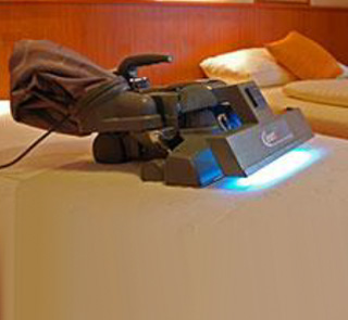 Through high frequency vibrations of an electronically controlled vacuum machine that adapts to any type of mattress, dirt particles are first loosened within the mattress, then pulverized and vacuumed.